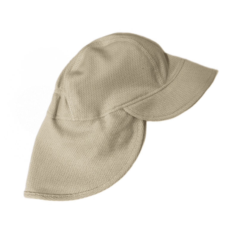 En lätt och luftig solhatt i ekologisk bomull som skyddar nacke och huvud, hatten har även en skärm i fram för att skydda ögonen.