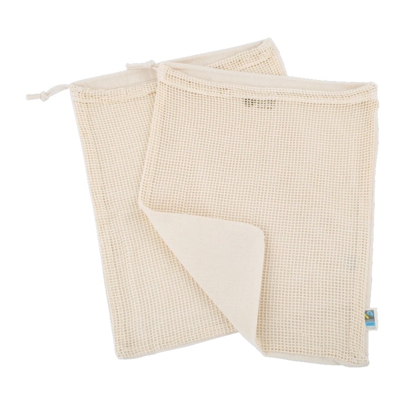 Undvik förpackningsavfall genom att använda dessa 100 % ekologiska bomullspåsar nästa gång du köper frukt och grönsaker. De är förtvättade, och är tvättbara.