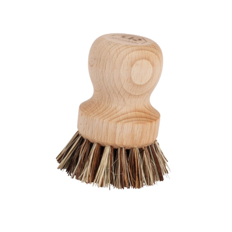 En grytborste som effektivt skrubbar bort smuts och matrester tack vare de hårda stråna av växtfiberblandning.