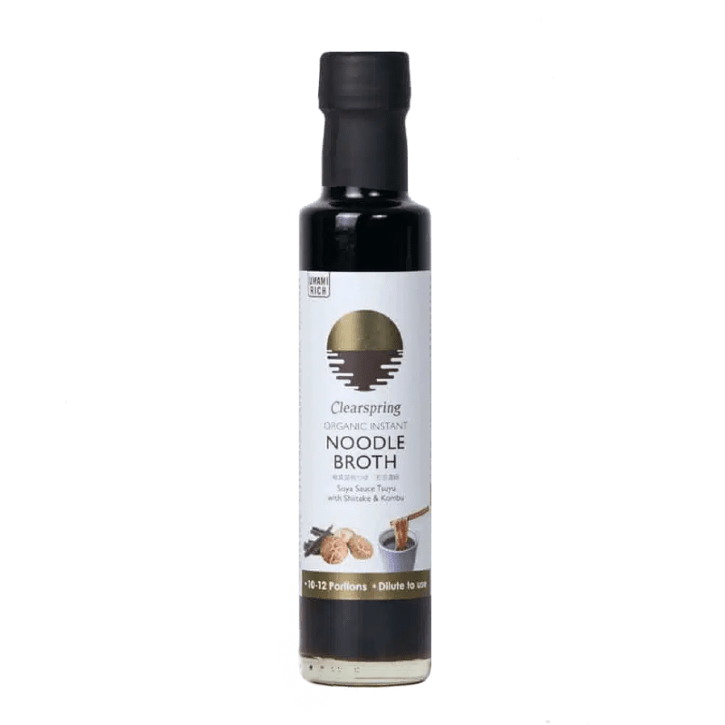 Clearspring nudelbuljong (Tsuyu) är en koncentrerad, smakrik och mångsidig buljong. Kombinationen av shiitakesvampextrakt, sojasås och mirin skapar en djup, utsökt och kryddig smak med en antydan till sötma. Med en koncentration på 1:3 är den lätt att använda. Blanda den med vatten, värm upp den och tillsätt den till exempel i kokta nudlar eller använd den ren som dippsås till vårrullar och dumplings. Clearspring nudelbuljong är också perfekt till svamprätter!