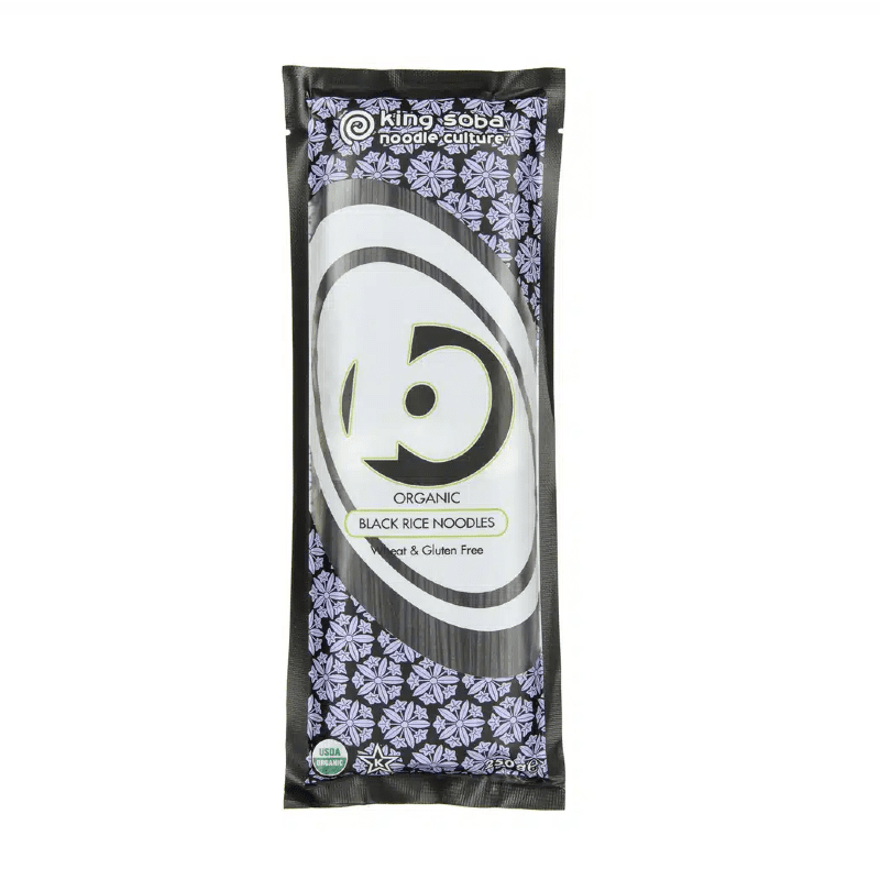 Ekologiska vete- och glutenfria nudlar med svart ris, vilket ger nudlarna en vacker djup lila färg efter tillagning. Nudlarna har en utsökt nötig smak som passar utmärkt till asiatiskinspirerade rätter. Prova även att använda dem som ett glutenfritt alternativ till pasta. Kan avnjutas både varma och kalla.