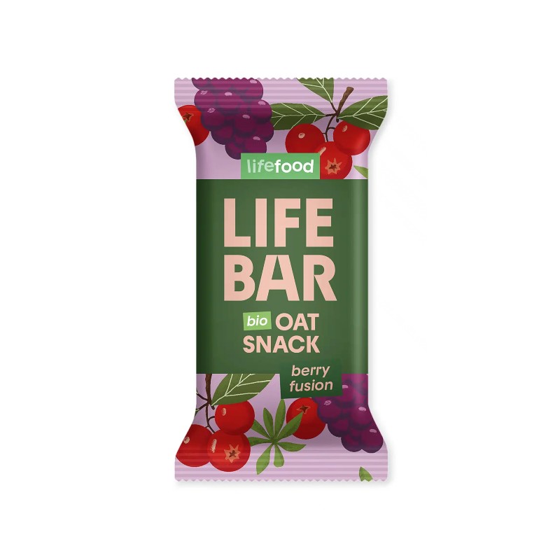Lifefood havregrynssnacks. Ekologisk och glutenfri havrebar med bär.